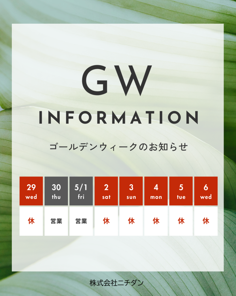 誠に勝手ながらゴールデンウィークは下記の期間をゴールデンウィーク休業とさせていただきます。
